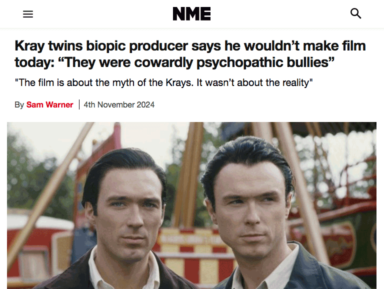 Kray twins biopic producer says he wouldn’t make film today: “They were cowardly psychopathic bullies”
